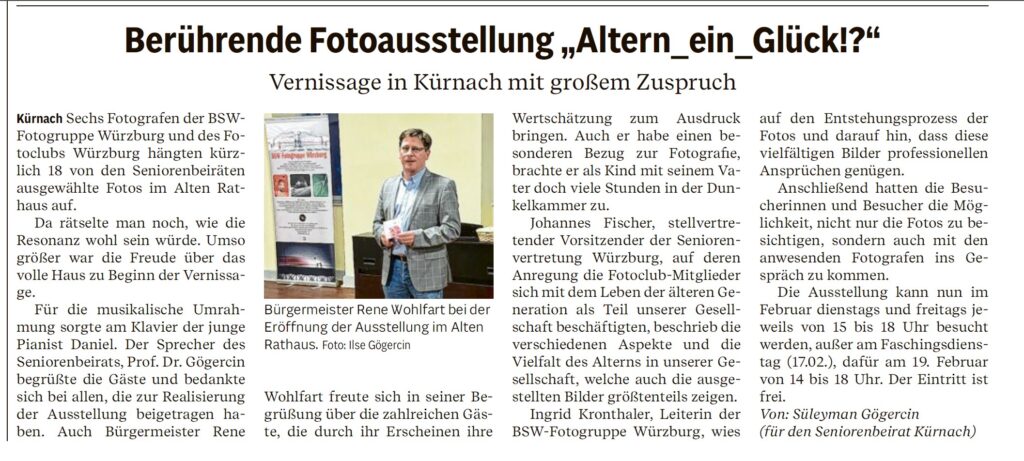 Jahreshauptversammlung der BSW-Fotogruppe 2025. Mainpost 28.02.2025